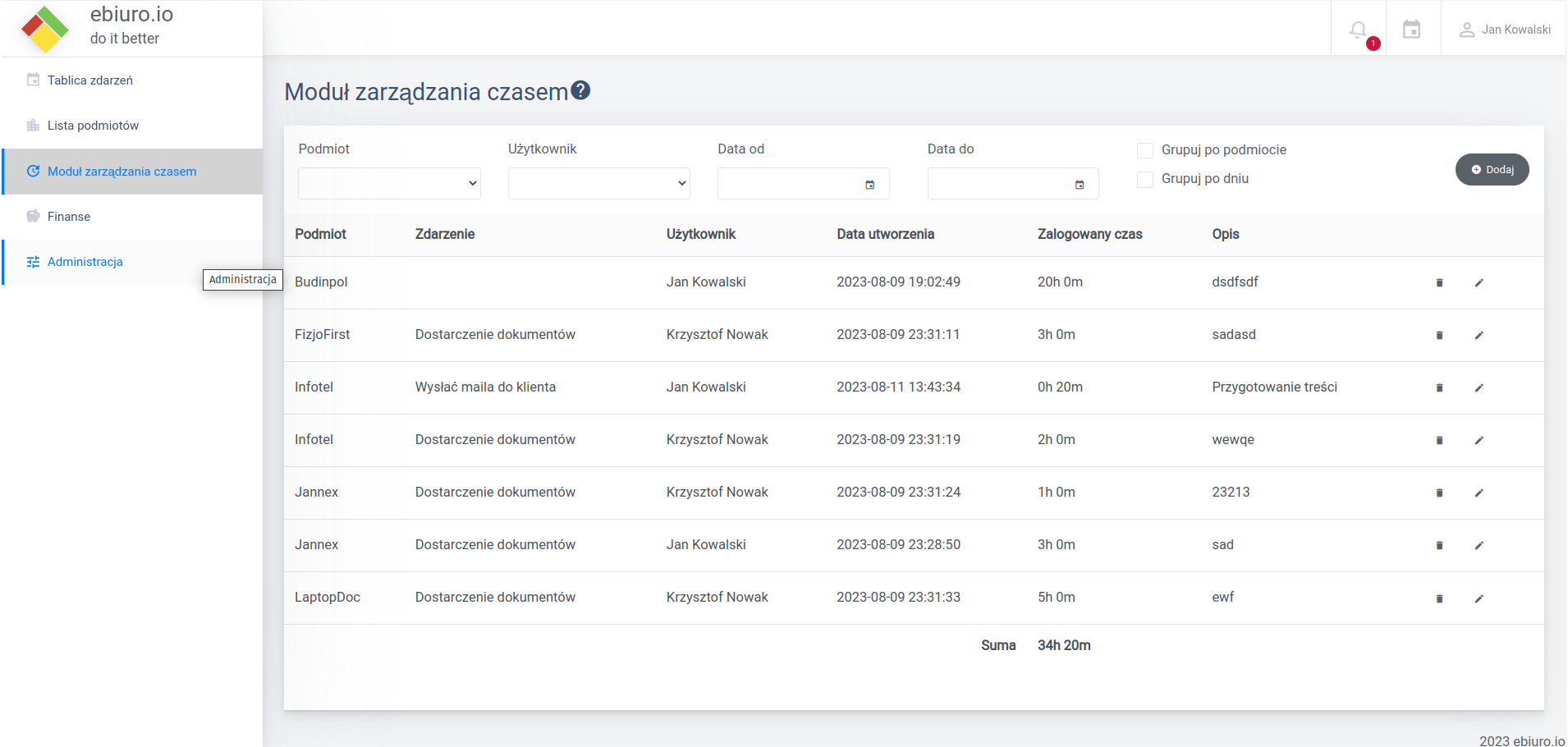 W miesiącu brakuje czasu? Pracownicy nie zdążają z terminami? ebiuro.io pomoże Ci zweryfikować gdzie leży problem. Na podstawie dostępnych zestawień i statystyk zewryfikujesz czas pracy pracowników oraz ich rentowność. Może to nie problem w pracownikach tylko w kliencie, może wymaga więcej pracy niż płaci? Spróbuj ebiuro.io przez miesiąc z darmo.